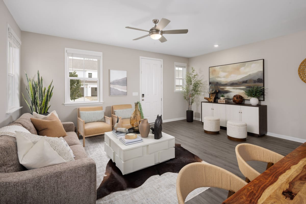 The brand new rental townhomes at Tricon Simpsonville offer a three-bedroom floor plan with modern finishes.